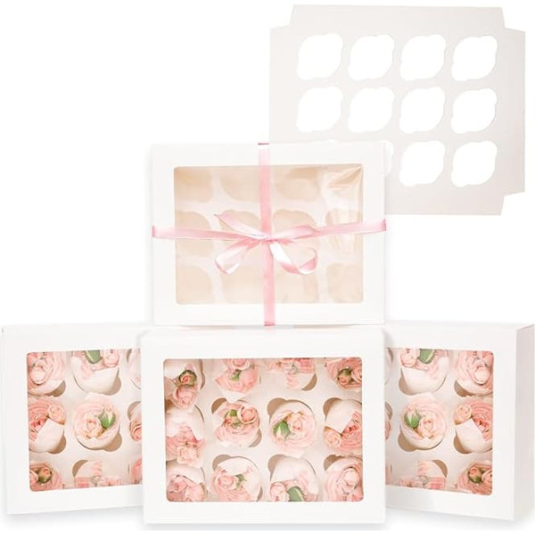 Gcardist Automatic Popup 12 Cupcake Boxes with Window, White, Pack of 12 Cupcake Boxes, 33 x 25.4 x 9 cm, Bakery Boxes for Cupcake Carrier, Cupcake Containers (13 x 10 x 3.5 inches)
