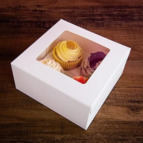 White Cupcake Box for any occasion Ideal for the Storage and Carrying up to 4 cupcakes Supplied flat-packed they are easy to install Complete with clear windows, great for display your cupcakes Box size – 16 cm x 16 cm x 7.5 cm, complete with insert tray › See more product details; Product description Our white cupcake boxes are suitable for any occasion. This box is ideal for storing or transporting up to four cupcakes at once safely and protected. The box has an insert to safely store cupcakes. Flat and easily assembled, enjoy your DIY party, wedding or Christmas party. The diameter of the insert is standard size 6.5 cm, the box can hold 4 cupcakes inside. Fill these elegant boxes with beautiful cupcakes that can be an unforgettable surprise for your guests. Decorate with colored ribbons, flowers or attach with personalized labels, stickers or tags to match your wedding or holiday theme. Use these boxes to display and sell your tartlets at your local cake market, party or summer party. Instructions for assembly 1) First fold all edges along the pre-folded folds. 2) Start with the bottom of the box and fold over the two sides with the pre-punched slots. 3) Fold over the front and back and insert tabs into the pre-cut slots from the outside to keep them in place. 4) Put the insert into the box. 5) Fold the top of the box down and make sure that the side tabs are inserted into the side slots and the small tab on the front of the lid is inserted into the box.; Product description Our white cupcake boxes are suitable for any occasion. This box is ideal for storing or transporting up to four cupcakes at once safely and protected. The box has an insert to safely store cupcakes. Flat and easily assembled, enjoy your DIY party, wedding or Christmas party. The diameter of the insert is standard size 6.5 cm, the box can hold 4 cupcakes inside. Fill these elegant boxes with beautiful cupcakes that can be an unforgettable surprise for your guests. Decorate with colored ribbons, flowers or attach with personalized labels, stickers or tags to match your wedding or holiday theme. Use these boxes to display and sell your tartlets at your local cake market, party or summer party. Instructions for assembly 1) First fold all edges along the pre-folded folds. 2) Start with the bottom of the box and fold over the two sides with the pre-punched slots. 3) Fold over the front and back and insert tabs into the pre-cut slots from the outside to keep them in place. 4) Put the insert into the box. 5) Fold the top of the box down and make sure that the side tabs are inserted into the side slots and the small tab on the front of the lid is inserted into the box.; Our white cupcake boxes are suitable for any occasion. This box is ideal for storing or transporting up to four cupcakes at once safely and protected. The box has an insert to safely store cupcakes. Flat and easily assembled, enjoy your DIY party, wedding or Christmas party. The diameter of the insert is standard size 6.5 cm, the box can hold 4 cupcakes inside. Fill these elegant boxes with beautiful cupcakes that can be an unforgettable surprise for your guests. Decorate with colored ribbons, flowers or attach with personalized labels, stickers or tags to match your wedding or holiday theme. Use these boxes to display and sell your tartlets at your local cake market, party or summer party. Instructions for assembly 1) First fold all edges along the pre-folded folds. 2) Start with the bottom of the box and fold over the two sides with the pre-punched slots. 3) Fold over the front and back and insert tabs into the pre-cut slots from the outside to keep them in place. 4) Put the insert into the box. 5) Fold the top of the box down and make sure that the side tabs are inserted into the side slots and the small tab on the front of the lid is inserted into the box.