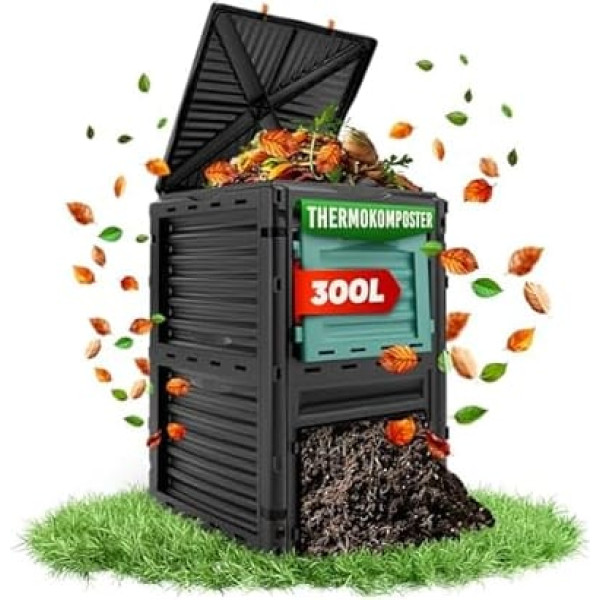 Fast composting: the thermal composter with 300 L volume efficiently transforms kitchen and garden waste into nutrient-rich soil - ideal for sustainable gardening without chemical fertilisers. DURABLE & WEATHERPROOF - Made from recycled, UV and weather resistant plastic. The composter is durable, sturdy and defies rain, frost and sun - perfect for year-round use. Easy to install: the plug-in system allows easy installation without tools. The large openings make it easy to fill and remove the finished compost - for effortless use. Optimal ventilation: thanks to special ventilation slots, rapid decomposition is promoted. The compost remains well ventilated, avoiding unpleasant odours and accelerating the rotting process. UNIVERSAL USE: Ideal for fruit & vegetable leftovers, lawn cuttings, coffee grounds, leaves, eggshells & more. Suitable for gardens, balconies or allotments - environmentally friendly, space-saving & sustainable. › See more product details