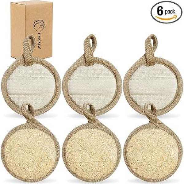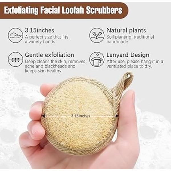 Deep Cleansing and Exfoliation: Our exfoliating loofah face scrubber pads effectively remove dirt, oil, and dead skin cells, leaving your skin refreshed and rejuvenated. Natural loofa material: made from natural loofa, these facial sponges are eco-friendly, biodegradable, and vegan. Dual-Sided Design: One side features a dense natural loofah for effective exfoliation with soap or shower gel. The other side is a soft sponge for removing grease, dirt, and debris. Elastic straps on the back ensure a secure grip. Manual Exfoliation Brush: With their textured surface, our face scrubber pads offer manual exfoliation, helping to improve skin texture and promote a healthy glow. Large Size: Each pad measures 3.15x3.15 inches, providing ample coverage for your facial cleansing routine. Perfect Gift: Each box contains six individually packaged face loofah sponge pads, making it a thoughtful gift for friends and family. How to Use: Before use, soak the luffa exfoliator pad in warm water for 5 minutes to soften. After use, rinse and hang to air dry. › See more product details; Product description Product description Our 6-pack exfoliating facial sponge pads provide deep cleansing and effectively remove dead skin cells, leaving your skin feeling refreshed and rejuvenated. Natural Loofah Material These facial sponge pads made from natural loofah are gentle on the skin and environmentally friendly. DOUBLE SIDED DESIGN One side features dense loofah fibers for effective exfoliation and removal of impurities, while the other side is made of soft cotton for gentle cleaning. Large face pads: each pad has a diameter of 3.15 inches. Provides sufficient surface area for facial exfoliation and cleansing. DURABLE & DURABLE Our exfoliating sponge pads are designed for multiple use and ensure long lasting skincare benefits. Easy to clean: simply rinse the sponge pads after use and let them air dry well ventilated area. Note: Manual measurement may have slight deviations. Colours may vary slightly due to monitor settings. Directions Before use, soak the loofah scrub pad in warm water for 5 minutes to soften it. Rinse after use and allow to air dry. Safety Warning Please clean and air well to avoid the growth of bacteria. See more; Product description Product description Our 6-pack exfoliating facial sponge pads provide deep cleansing and effectively remove dead skin cells, leaving your skin feeling refreshed and rejuvenated. Natural Loofah Material These facial sponge pads made from natural loofah are gentle on the skin and environmentally friendly. DOUBLE SIDED DESIGN One side features dense loofah fibers for effective exfoliation and removal of impurities, while the other side is made of soft cotton for gentle cleaning. Large face pads: each pad has a diameter of 3.15 inches. Provides sufficient surface area for facial exfoliation and cleansing. DURABLE & DURABLE Our exfoliating sponge pads are designed for multiple use and ensure long lasting skincare benefits. Easy to clean: simply rinse the sponge pads after use and let them air dry well ventilated area. Note: Manual measurement may have slight deviations. Colours may vary slightly due to monitor settings. Directions Before use, soak the loofah scrub pad in warm water for 5 minutes to soften it. Rinse after use and allow to air dry. Safety Warning Please clean and air well to avoid the growth of bacteria. See more; Product description Our 6-pack exfoliating facial sponge pads provide deep cleansing and effectively remove dead skin cells, leaving your skin feeling refreshed and rejuvenated. Natural Loofah Material These facial sponge pads made from natural loofah are gentle on the skin and environmentally friendly. DOUBLE SIDED DESIGN One side features dense loofah fibers for effective exfoliation and removal of impurities, while the other side is made of soft cotton for gentle cleaning. Large face pads: each pad has a diameter of 3.15 inches. Provides sufficient surface area for facial exfoliation and cleansing. DURABLE & DURABLE Our exfoliating sponge pads are designed for multiple use and ensure long lasting skincare benefits. Easy to clean: simply rinse the sponge pads after use and let them air dry well ventilated area. Note: Manual measurement may have slight deviations. Colours may vary slightly due to monitor settings. Directions Before use, soak the loofah scrub pad in warm water for 5 minutes to soften it. Rinse after use and allow to air dry. Safety Warning Please clean and air well to avoid the growth of bacteria. See more