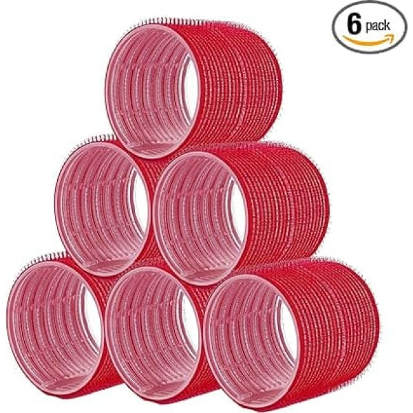 PONIK'S PROFESSIONAL - Hair Rollers, Hair Rollers, Self-Adhesive Set, Hair Roller, 6 Pieces, Hair Rollers, Curls 70 mm, Jumbo Size Hair Curlers, Self Grip Curls - Red