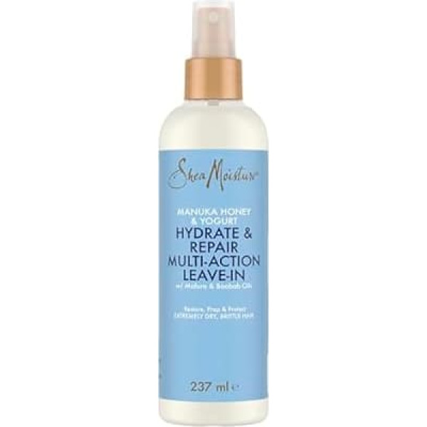 Rich formulation of restorative oils to soften and revitalize hair › See more product details; Product description Product Description About SheaMoisture Manuka Honey & Yoghurt Hydrate & Repair Multi-Action Leave-In The SheaMoisture Manuka Honey & Yoghurt Hydrate & Repair Multi-Action Leave-In helps nourish hair in the best possible way. The leave-in moisturises, protects, strengthens and softens damaged hair. It helps to style the hair properly. The leave-in repairs brittle and heat-styled hair and reduces the risk of hair breakage. The SheaMoisture Manuka Honey & Yoghurt Hydrate & Repair Multi-Action Leave-In is enriched with manuka honey, yogurt and fair trade shea butter. This lightweight leave-in makes hair stronger and less brittle. Ideal for hair that breaks or splits easily. Directions for use: For best results, first clean and condition hair with SheaMoisture Manuka Honey & Yoghurt Hydrate & Repair Shampoo and Conditioner. Then spray the leave-in conditioner liberally onto towel-dried hair. Important: avoid eye contact. In case of contact with eyes, rinse immediately with water. The story of SheaMoisture: SheaMoisture is the legacy of Sofi Tucker, a groundbreaking entrepreneur and mother of four. As early as 1912, she sold homemade beauty products such as shea butter and black African soap in Sierra Leone. We honor their vision by continuing to use pure shea butter handmade by women in Africa. Buying our products helps these women have a better and healthier future. Directions Apply a generous amount of this light conditioner without rinsing to clean, towel-dried hair. Gentle comb for even distribution. Do not rinse. Allow to air dry or air dry. For best results, use Hydrate & Repair shampoo together to strengthen hair. Safety Warning It is recommended to check the list of ingredients printed on the packaging before using the product. See more; Product description Product Description About SheaMoisture Manuka Honey & Yoghurt Hydrate & Repair Multi-Action Leave-In The SheaMoisture Manuka Honey & Yoghurt Hydrate & Repair Multi-Action Leave-In helps nourish hair in the best possible way. The leave-in moisturises, protects, strengthens and softens damaged hair. It helps to style the hair properly. The leave-in repairs brittle and heat-styled hair and reduces the risk of hair breakage. The SheaMoisture Manuka Honey & Yoghurt Hydrate & Repair Multi-Action Leave-In is enriched with manuka honey, yogurt and fair trade shea butter. This lightweight leave-in makes hair stronger and less brittle. Ideal for hair that breaks or splits easily. Directions for use: For best results, first clean and condition hair with SheaMoisture Manuka Honey & Yoghurt Hydrate & Repair Shampoo and Conditioner. Then spray the leave-in conditioner liberally onto towel-dried hair. Important: avoid eye contact. In case of contact with eyes, rinse immediately with water. The story of SheaMoisture: SheaMoisture is the legacy of Sofi Tucker, a groundbreaking entrepreneur and mother of four. As early as 1912, she sold homemade beauty products such as shea butter and black African soap in Sierra Leone. We honor their vision by continuing to use pure shea butter handmade by women in Africa. Buying our products helps these women have a better and healthier future. Directions Apply a generous amount of this light conditioner without rinsing to clean, towel-dried hair. Gentle comb for even distribution. Do not rinse. Allow to air dry or air dry. For best results, use Hydrate & Repair shampoo together to strengthen hair. Safety Warning It is recommended to check the list of ingredients printed on the packaging before using the product. See more; Product Description About SheaMoisture Manuka Honey & Yoghurt Hydrate & Repair Multi-Action Leave-In The SheaMoisture Manuka Honey & Yoghurt Hydrate & Repair Multi-Action Leave-In helps nourish hair in the best possible way. The leave-in moisturises, protects, strengthens and softens damaged hair. It helps to style the hair properly. The leave-in repairs brittle and heat-styled hair and reduces the risk of hair breakage. The SheaMoisture Manuka Honey & Yoghurt Hydrate & Repair Multi-Action Leave-In is enriched with manuka honey, yogurt and fair trade shea butter. This lightweight leave-in makes hair stronger and less brittle. Ideal for hair that breaks or splits easily. Directions for use: For best results, first clean and condition hair with SheaMoisture Manuka Honey & Yoghurt Hydrate & Repair Shampoo and Conditioner. Then spray the leave-in conditioner liberally onto towel-dried hair. Important: avoid eye contact. In case of contact with eyes, rinse immediately with water. The story of SheaMoisture: SheaMoisture is the legacy of Sofi Tucker, a groundbreaking entrepreneur and mother of four. As early as 1912, she sold homemade beauty products such as shea butter and black African soap in Sierra Leone. We honor their vision by continuing to use pure shea butter handmade by women in Africa. Buying our products helps these women have a better and healthier future. Directions Apply a generous amount of this light conditioner without rinsing to clean, towel-dried hair. Gentle comb for even distribution. Do not rinse. Allow to air dry or air dry. For best results, use Hydrate & Repair shampoo together to strengthen hair. Safety Warning It is recommended to check the list of ingredients printed on the packaging before using the product. See more