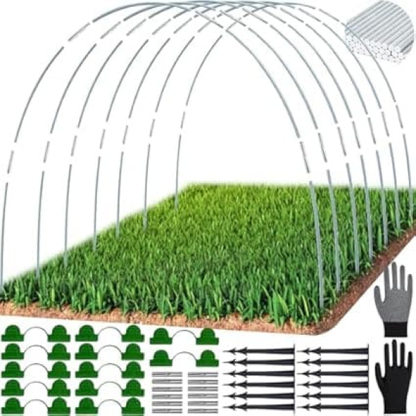 Greenhouse hoop DIY kit includes: 30 pieces large diameter hoop frame, 1 pair of gloves work gloves men women, 20 ports, 20 garden clips and 20 ground nails. You can combine with 5 or more garden stakes to build garden grow tunnel, mini grow tent, small greenhouse, chicken wire and garden arch to meet your needs. High-quality materials: the outer fibreglass layer of the garden tunnel arch is coated with plastic, which is flexible and does not break easily. The removable design saves more space and can be reused. Easy to assemble and bend: According to the width of the raised flower bed, connect a certain number of hoops with connectors, insert the hanging rings on one side into the soil, then just bend the garden hanging rings and insert the other side, and finally use the clips to fix your row cover. Enjoy the fruits of your work: Ideal blueberry net, this effective deterrent works best as an outer cover for tomatoes, strawberries, blueberries, figs, cherries and other fruit trees. Keep pest birds away and your harvest pick-free this summer. Greenhouse tunnel arches, wide application: these garden tyres can not only be used as row covering garden tyres, but also as a perfect support for chicken slopes or climbing plants. Perfect as a plant cover, garden net, bird net. › See more product details