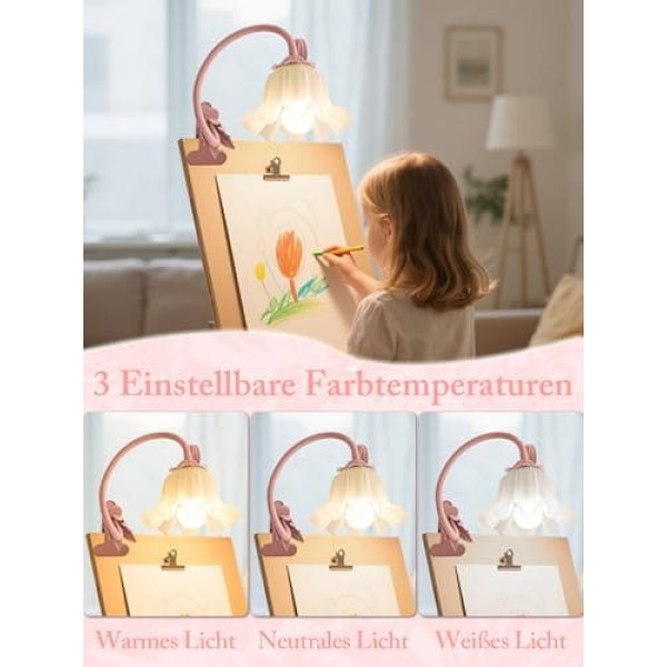 Exquisite flower lamp design: reading lamp bed with delicate lily of the valley flowers, this flower vintage lamp mixes vintage style and is ideal for bedrooms and studies. Flower bedside lamp unique shape and exquisite craftsmanship not only live in the room, but also show a unique artistic taste 3 colours dimmable: this children's bedside lamp has 3 colour temperature levels (white light, natural light, warm light), which are controlled via a pressure switch. Set the right light colour for different environments, it is particularly suitable as a gift for girls and mum Flexible gooseneck and stable clamp: this vintage lamp has a flexible gooseneck design, an adjustable lamp base for different heights and angles, a 360° rotating flexible arm and a non-slip base. The bedside lamp is small, lightweight and easy to carry High-quality materials and energy-saving lighting: this vintage style bedside lamp is made of high-quality materials, equipped with a durable lampshade and efficient E27 LED bulbs, which provide you with sufficient and warm lighting and save you the purchase of bulbs. The energy-saving design not only helps you save energy costs, but also ensures a long-term light effect and a comfortable experience Ideal decoration and gift choice: pink floral bedside lamp not only a raised decoration for indoor spaces, but also ideal for bedside tables, living rooms, bedrooms and many other places. Suitable as a thoughtful gift for Christmas, Valentine's Day › See more product details