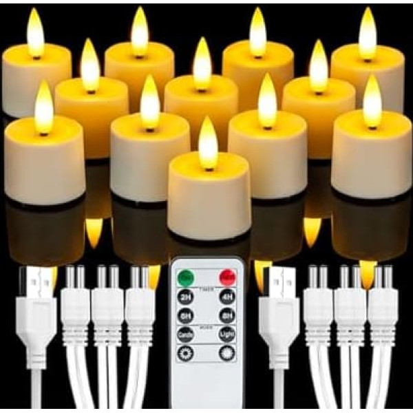 Homemory Pack of 12 Rechargeable Tea Lights Votive Candles with Remote Control, Timer LED Tea Lights for Christmas, Halloween, Festivals, Home Decoration