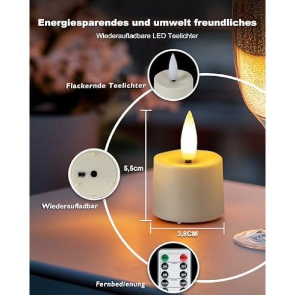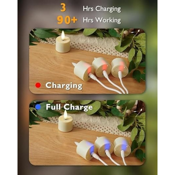 We know your concerns: no more worrying about unnoticed or hard flicker and no more strange shades of green. Homemory rechargeable candles have 4 different flickering modes, the color temperature of 2700K brings a bright and warm light, the brightness can be adjusted by remote control, they would be ideal for ambient lighting. EASY CHARGING No longer have to worry about opening the battery compartment to replace the battery, or worry about the candle being difficult to insert into the charging station. Homemory rechargeable tea lights use a spider web cable system to easily charge the candle. Smart control via remote control + timer: practical remote control included! Control on/off, flame effect, brightness and the 2/4/6/8h timer cycle* - all conveniently from a distance. Solve all the following problems: wax candles can't last long; safety concerns while leaving them unattended; the mess of melted wax; your cute curious kids or pets toss them over; breeze blows them out. Relaxing & Soothing 3D wick modeling simulates candle flame, the flame gives off a realistic appearance, from pumpkin lighting to winter atmosphere lighting, from mood lighting to table centerpieces, adding elegance and comfort to your life. › See more product details