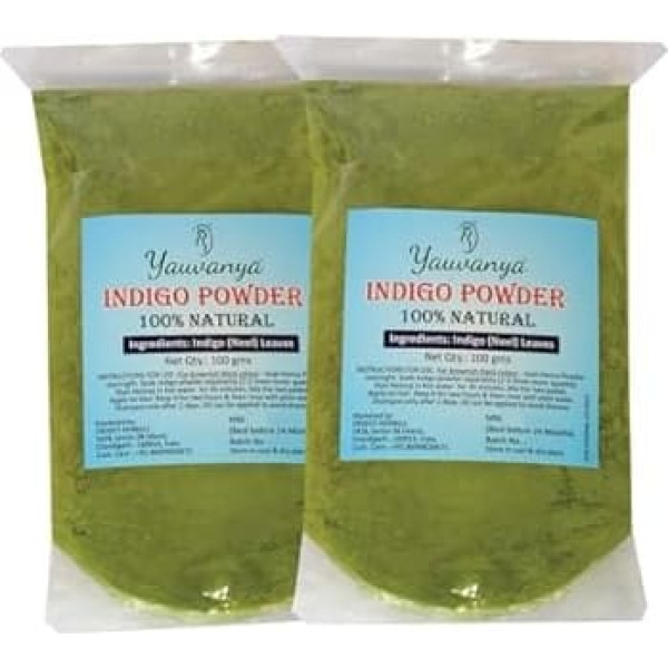 100% natural, cruelty free, 100% vegan pure indigo powder for the hair Pesticide free, zero chemicals, zero metallic salts Net weight of the product 200 g - 1 pack = 100 g Please visit http://yauvanya.blogspot.in/2017/08/frequently-asked-questions-on-hair.html › See more product details; Product description Product description Go Natural.... Of course, the best. Yauvanya Indigo is a pure indigo powder made from the highest quality leaves. It contains no chemicals and harmful ingredients. Description - Indigo used together with henna is one of the best hair colour and natural care for the hair. Used together with henna not only your hair in different shades from brown to black, but also prevents dandruff and scalp itching. It is a very good conditioner and helps with hair growth. Yauvanya Indigo is made from the finest Indian leaves, which guarantee all the goodness of indigo is preserved in the powder. Legal Disclaimer Bei Allergien bitte vor Gebrauch ärztlichen Rat einholen.; Product description Product description Go Natural.... Of course, the best. Yauvanya Indigo is a pure indigo powder made from the highest quality leaves. It contains no chemicals and harmful ingredients. Description - Indigo used together with henna is one of the best hair colour and natural care for the hair. Used together with henna not only your hair in different shades from brown to black, but also prevents dandruff and scalp itching. It is a very good conditioner and helps with hair growth. Yauvanya Indigo is made from the finest Indian leaves, which guarantee all the goodness of indigo is preserved in the powder. Legal Disclaimer Bei Allergien bitte vor Gebrauch ärztlichen Rat einholen.; Product description Go Natural.... Of course, the best. Yauvanya Indigo is a pure indigo powder made from the highest quality leaves. It contains no chemicals and harmful ingredients. Description - Indigo used together with henna is one of the best hair colour and natural care for the hair. Used together with henna not only your hair in different shades from brown to black, but also prevents dandruff and scalp itching. It is a very good conditioner and helps with hair growth. Yauvanya Indigo is made from the finest Indian leaves, which guarantee all the goodness of indigo is preserved in the powder. Legal Disclaimer Bei Allergien bitte vor Gebrauch ärztlichen Rat einholen.