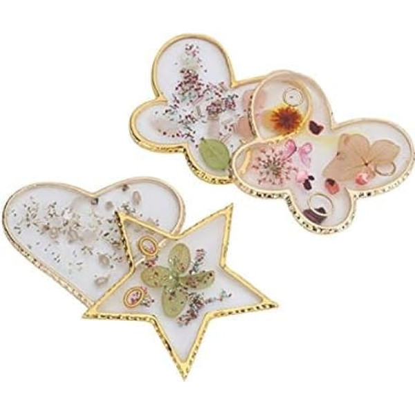 Künstlerische Nagelkunstplatte mit Elektroplatter Goldkante für Maniküre - 4PCS -Kristall infundierte Mischpalette mit Getrockneten Blüten und Muschelornamenten
