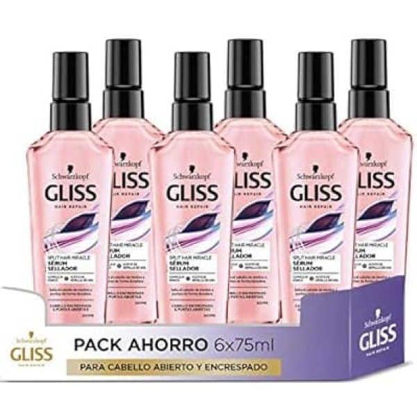 The Split Hair Miracle sealing serum is suitable for open and frizzy hair Permanently seals hair from mid to tip With ion complex + grape seed oil to connect split ends and seal the hair cuticle by balancing the surface GLISS Formulations with advanced hair ingredients + natural treasures repair existing damage and visibly improve hair quality How to use: apply to damp hair after washing; do not rinse; protect from sunlight and freezing; flammable; use 2-3 times a week › See more product details; Product description Product Description GLISS Formulations with advanced hair ingredients + natural treasures have been developed for the special needs of hair: they repair existing damage and visibly improve hair quality. Tired of having frizzy hair with full length split ends? Permanently seal your hair with the Split Hair Miracle range, specially designed for the needs of frizzy hair, with ion complex + grape seed oil to bond split ends and seal the cuticle layer of the hair by balancing the surface. Gliss Split Hair Miracle Sealing Serum permanently seals hair from mid to tip. Directions for use: apply to damp hair after washing. Do not rinse. Protect from sunlight and freezing. Apply inflammable 2-3 times a week. Directions Apply to damp hair after washing. Do not rinse. Protect from sunlight and freezing. Use 2-3 times a week.; Product description Product Description GLISS Formulations with advanced hair ingredients + natural treasures have been developed for the special needs of hair: they repair existing damage and visibly improve hair quality. Tired of having frizzy hair with full length split ends? Permanently seal your hair with the Split Hair Miracle range, specially designed for the needs of frizzy hair, with ion complex + grape seed oil to bond split ends and seal the cuticle layer of the hair by balancing the surface. Gliss Split Hair Miracle Sealing Serum permanently seals hair from mid to tip. Directions for use: apply to damp hair after washing. Do not rinse. Protect from sunlight and freezing. Apply inflammable 2-3 times a week. Directions Apply to damp hair after washing. Do not rinse. Protect from sunlight and freezing. Use 2-3 times a week.; Product Description GLISS Formulations with advanced hair ingredients + natural treasures have been developed for the special needs of hair: they repair existing damage and visibly improve hair quality. Tired of having frizzy hair with full length split ends? Permanently seal your hair with the Split Hair Miracle range, specially designed for the needs of frizzy hair, with ion complex + grape seed oil to bond split ends and seal the cuticle layer of the hair by balancing the surface. Gliss Split Hair Miracle Sealing Serum permanently seals hair from mid to tip. Directions for use: apply to damp hair after washing. Do not rinse. Protect from sunlight and freezing. Apply inflammable 2-3 times a week. Directions Apply to damp hair after washing. Do not rinse. Protect from sunlight and freezing. Use 2-3 times a week.
