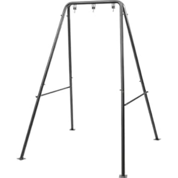 DURABLE Made of iron pipes with a high temperature baking finish, this product is rust-proof, wear-resistant and sturdy, so you can use it for a long time. Extremely practical: you can put it in your bedroom, balcony, garden or yard and attach a hanging chair (not included) to it to enjoy various activities such as reading, resting and enjoying your favorite music. GENEROUS APPEARANCE The black/white hue and smooth lines give this product a generous appearance, making it easy to blend in with different places. Appropriate size: thanks to the appropriate size (52.76 x 46.46 x 70.08 inches) and the 3 hooks, it is suitable for most hanging chairs (not included), and you can easily install the hanging chair. INSTALL IN AN INSTANT The simple structure and complete accessories allow you to assemble this product quickly and enjoy the fun of assembly. › See more product details; Product description Product description Description Our hanging chair frame allows you to relax anytime and anywhere after attaching a hanging chair (not included) to it. It is specially designed to enhance your leisure pleasure indoors and outdoors. High-quality material and exquisite craftsmanship make it sturdy and durable. With its generous appearance, it blends easily into different environments. The triangular structure gives this product high stability, so you can use it with confidence. Details Smooth Edges The rounded and smooth edges not only contribute to the aesthetics of the product, but also improve the safety of use. STURDY FEET They form a sturdy triangular structure and are fitted with pre-drilled holes for easy attachment to the ground with expansion screws, making this frame less susceptible to shock. Application: Suitable for bedrooms, balconies, gardens, yards, etc. It is suitable for most hanging chairs (not included). Specifications Colour: black/white. Style: Modern Shape: triangle Material: iron tube. Process: high temperature stoving varnish. Assembly Required: Yes Mounting type: floor mount. Tube diameter: 40 mm/1.57 inches. Total product size: 134*118*178cm/52.76*46.46*70.08in Length of top bar: 70 cm/27.56 inches. Hook spacing: 22 cm/8.66 inches. Length of crossbar: 85 cm/33.46 inches. Height of crossbar above ground: 68 cm/26.77 inches. Package size: 100*12*12cm/39.37*4.72*4.72in Gross weight: 11 kg/24.25 lbs. Net weight: 10.45 kg/23.04 lbs. Package includes: 1 x hanging chair frame. 1 x English installation diagram. All accessories for installation Safety Warning 1. We do not recommend using this frame for swings. If used as a swing frame, we recommend attaching 4 sandbags (not included) weighing 11.02 lbs to increase stability.; Product description Product description Description Our hanging chair frame allows you to relax anytime and anywhere after attaching a hanging chair (not included) to it. It is specially designed to enhance your leisure pleasure indoors and outdoors. High-quality material and exquisite craftsmanship make it sturdy and durable. With its generous appearance, it blends easily into different environments. The triangular structure gives this product high stability, so you can use it with confidence. Details Smooth Edges The rounded and smooth edges not only contribute to the aesthetics of the product, but also improve the safety of use. STURDY FEET They form a sturdy triangular structure and are fitted with pre-drilled holes for easy attachment to the ground with expansion screws, making this frame less susceptible to shock. Application: Suitable for bedrooms, balconies, gardens, yards, etc. It is suitable for most hanging chairs (not included). Specifications Colour: black/white. Style: Modern Shape: triangle Material: iron tube. Process: high temperature stoving varnish. Assembly Required: Yes Mounting type: floor mount. Tube diameter: 40 mm/1.57 inches. Total product size: 134*118*178cm/52.76*46.46*70.08in Length of top bar: 70 cm/27.56 inches. Hook spacing: 22 cm/8.66 inches. Length of crossbar: 85 cm/33.46 inches. Height of crossbar above ground: 68 cm/26.77 inches. Package size: 100*12*12cm/39.37*4.72*4.72in Gross weight: 11 kg/24.25 lbs. Net weight: 10.45 kg/23.04 lbs. Package includes: 1 x hanging chair frame. 1 x English installation diagram. All accessories for installation Safety Warning 1. We do not recommend using this frame for swings. If used as a swing frame, we recommend attaching 4 sandbags (not included) weighing 11.02 lbs to increase stability.; Product description Description Our hanging chair frame allows you to relax anytime and anywhere after attaching a hanging chair (not included) to it. It is specially designed to enhance your leisure pleasure indoors and outdoors. High-quality material and exquisite craftsmanship make it sturdy and durable. With its generous appearance, it blends easily into different environments. The triangular structure gives this product high stability, so you can use it with confidence. Details Smooth Edges The rounded and smooth edges not only contribute to the aesthetics of the product, but also improve the safety of use. STURDY FEET They form a sturdy triangular structure and are fitted with pre-drilled holes for easy attachment to the ground with expansion screws, making this frame less susceptible to shock. Application: Suitable for bedrooms, balconies, gardens, yards, etc. It is suitable for most hanging chairs (not included). Specifications Colour: black/white. Style: Modern Shape: triangle Material: iron tube. Process: high temperature stoving varnish. Assembly Required: Yes Mounting type: floor mount. Tube diameter: 40 mm/1.57 inches. Total product size: 134*118*178cm/52.76*46.46*70.08in Length of top bar: 70 cm/27.56 inches. Hook spacing: 22 cm/8.66 inches. Length of crossbar: 85 cm/33.46 inches. Height of crossbar above ground: 68 cm/26.77 inches. Package size: 100*12*12cm/39.37*4.72*4.72in Gross weight: 11 kg/24.25 lbs. Net weight: 10.45 kg/23.04 lbs. Package includes: 1 x hanging chair frame. 1 x English i