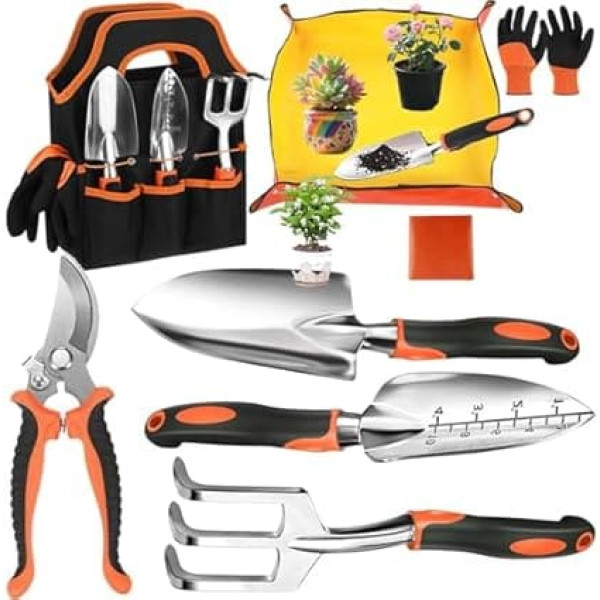 Gartenwerkzeug-Set, 7teiliges Garten-Handwerkzeug-Set Leichtgewichtiges Aluminium-Alloy-Rostschutz-Geschenkset mit strapazierbarem Aufbewahrungsbeutel und ergonomischem Anti-Rutsch-Griff (Orange)
