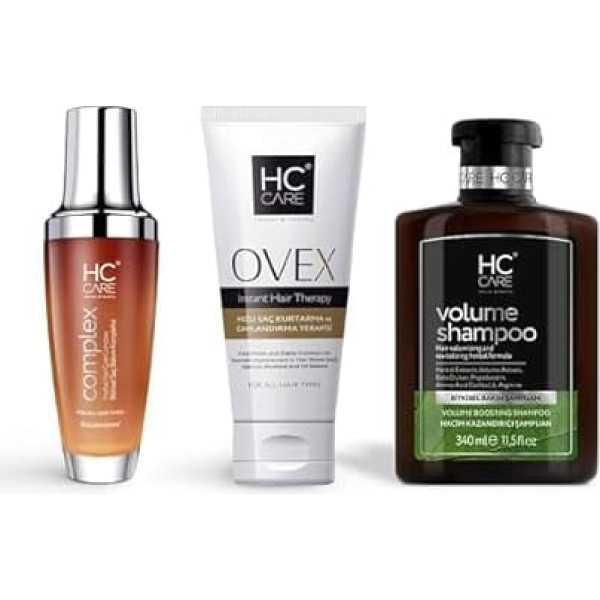 How to use: Apply HC Complex first to the hair roots and then to the entire hair in the form of friction (massage with your fingertips). Leave it on your hair for 45 minutes to 2 hours and wash it with shampoo. In addition, you can apply it to the desired areas every day or every other day and again by massaging. How to use: Apply HC Care Normal & Dry Hair Shampoo by gently massaging your hair after moistening. Leave it on your hair for a few minutes and rinse. HC Care normal and dry hair shampoo: developed by HC Care normal and dry hair shampoo, contains many plant extracts. It is a combination of 100 herbs and patented. This vitamin blend contains vitamins A, E, F and H (biotin), which are important for the beauty and health of the hair. How to use: gently remove the moisture from your hair that you have washed with shampoo by squeezing it out by hand or with a towel. Take a sufficient amount of HC OVEX in your palm according to your hair length. While slightly damp, apply evenly to your hair (except the scalp). You only need to leave HC OVEX on your hair for a short time, about 5 minutes. Rinse all your hair with water for a short time, but not too much. Fast hair restoration and revitalisation: the smooth texture of HC OVEX gives the hair surface a non-charged and easy to comb structure. It gives the hair impressive movement and natural vibration. It regulates the moisture and fat balance by supporting the hair with active ingredients. It prevents moisture loss and protects against breakage and environmental influences. › See more product details