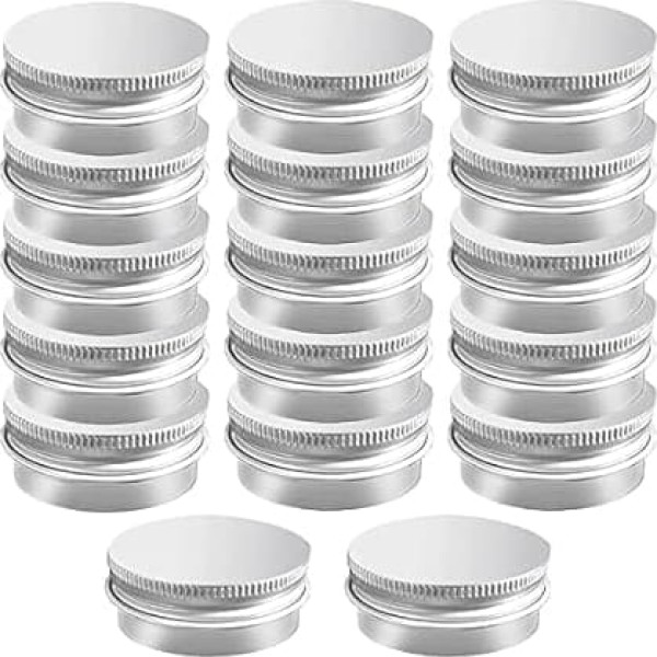 Package:20pcs Screw lids of containers have no sharp edges, all edges are rounded to avoid scratching the hand. HIGH QUALITY MATERIAL - These round aluminum tins are made of durable, lightweight and corrosion-resistant tin plated aluminium. They have a screw cap that is easy to open and close, and protect your items from direct sunlight and high temperatures. Size: 6.9 cm diameter. Height 2.5cm, Capacity 60ml Convenient to carry: these glasses fit seamlessly into your pocket, purse, handbag, backpack or luggage. The multi-purpose tins can be used to store candles as party favours. In addition, it is an ideal gift to store a variety of items such as lip balms, cosmetics, sample pots, lip gloss and other art materials. Every product is carefully selected and examined. › See more product details; Product description The 20 aluminium tins are made of tinned aluminium. Screw lids of containers have no sharp edges, all edges are rounded to prevent hand scratches. The multi-purpose tins can be used to store candles as party favours. In addition, it is an ideal gift to store a variety of items such as lip balm, cosmetics, sample pots, lip gloss and other art materials. CONVENIENT TO CARRY These glasses fit seamlessly into your pocket, purse, purse, backpack, or luggage.; Product description The 20 aluminium tins are made of tinned aluminium. Screw lids of containers have no sharp edges, all edges are rounded to prevent hand scratches. The multi-purpose tins can be used to store candles as party favours. In addition, it is an ideal gift to store a variety of items such as lip balm, cosmetics, sample pots, lip gloss and other art materials. CONVENIENT TO CARRY These glasses fit seamlessly into your pocket, purse, purse, backpack, or luggage.; The 20 aluminium tins are made of tinned aluminium. Screw lids of containers have no sharp edges, all edges are rounded to prevent hand scratches. The multi-purpose tins can be used to store candles as party favours. In addition, it is an ideal gift to store a variety of items such as lip balm, cosmetics, sample pots, lip gloss and other art materials. CONVENIENT TO CARRY These glasses fit seamlessly into your pocket, purse, purse, backpack, or luggage.