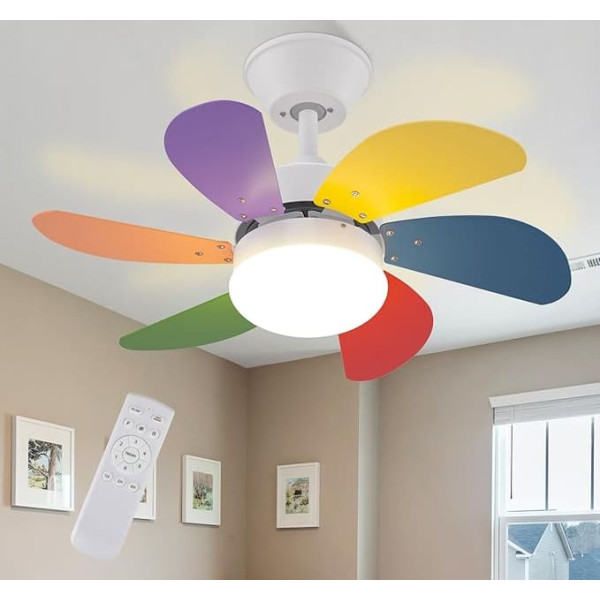 Homefire Ceiling Fan with Lighting and Remote Control Quiet - Ceiling Light Living Room 6 Blades Diameter 75 cm Fan Timing Ceiling Light with Single Light Fan Summer / Winter Bedroom / Colourful