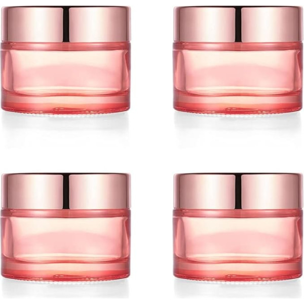 Furnido Glass Cream Jar, 4 Pack 50g Empty Refillable Glass Cosmetic Cream Bottle with Rose Gold Cover, Interior Liner for Moisturizer, Eyeshadow, Makeup Emulsion, Pink