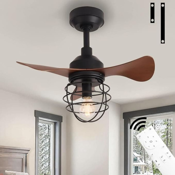Retro design: ceiling light has an E27 socket, which matches the retro bulb. Visually, the industrial ceiling light combines an industrial character with an antique touch. The industrial charm stems primarily from the wire shade, while the black finish not only appears deceptively real, but also provides nostalgia for the viewer. Two-way rotation: with the reversible control function, you can switch the direction of the modern ceiling fan from downward air flow in summer to upward air flow during the cooler winter to recover lost heat from the ceiling and reduce energy costs. Remote control: all operations can be controlled via the remote control. Adjust the lighting switch of the ceiling fan, 6 wind speeds and support the time shutdown (1/2/4 hours). The fan or lighting can be switched on separately. Easy installation: diameter 56cm, 2 drop rods: 15cm and 25cm, for low and ceiling height, hanging systems ensure that the fan is well balanced. Very suitable for living room, bedroom, kitchen, dining room, bar, hotel, cafe or in commercial workspaces also great hanging. Silicon steel DC motor: Silent motor ensures comfortable sleeping and creates a quiet living environment, constant strong power supply and fully enclosed design. › See more product details