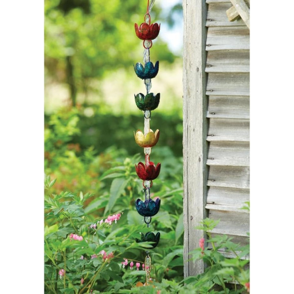 The colourful rain chain brings a bold look to your home Each mug mimics a lily flower with a scalloped rim for a dramatic touch Blue, green, red and gold cups add vibrant colors to your surroundings Steel construction is durable for many seasons Includes gutter clip for easy installation › See more product details; Product description Lily Multicoloured Rain Chain (Pack of 1); Product description Lily Multicoloured Rain Chain (Pack of 1); Lily Multicoloured Rain Chain (Pack of 1)