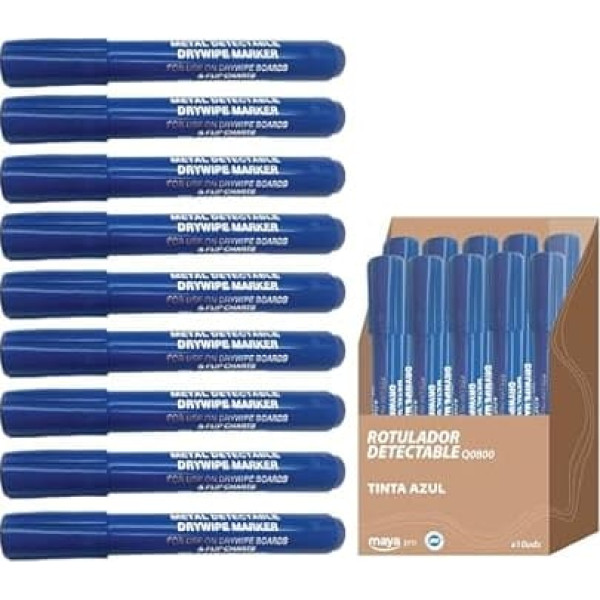 Maya Professional Tools q0800 – 2/2 Marker Detectable per of metals and X-ray, Pack of 10, Blue Body, Blue Ink