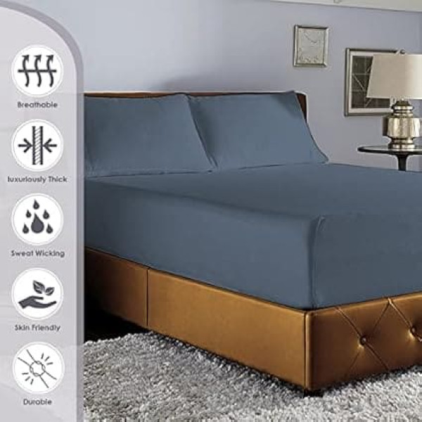 Pizuna 800 Thread Count Cotton Fitted Sheet 90 x 200 - 100 x 200 cm Dark Blue, 100% Long Staple Fitted Sheet, Soft Mako Satin Weave Fits up to 40 cm Mattress Height (100% Cotton Bed Sheet)