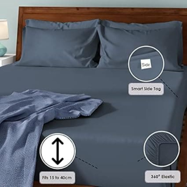 COMFORT & LUXURY Experience comfort with this tightly woven 800 thread count Sateen Weave fitted sheet, precision woven from 100% long staple combed cotton. Our minimal artificial workmanship and compacted yarn create a breathable and durable fabric that encloses the mattress excellently with its heavy texture. It is skin-friendly, sweat-wicking and temperature-regulating, which guarantees a sleeping comfort worthy of a 5-star hotel. Smart SideSign:Fitted sheet (90cm x 200cm to 100cm x 200cm) with Smart Side Tag provides an easy and comfortable fit for a 90cm x 200cm mattress and a tight, firm fit for a 100cm x 200cm mattress with a 40cm deep pocket which is convenient to use and easy to put on the mattress. The patented stitch pattern ensures a 360 degree comfort fit on mattresses from 15 cm to 40 cm thick and prevents them from falling off at night. 100% PURE ELEGANCE MADE FROM MERCERIZED COTTON: Thanks to Pizuna's fine yarn technique that uses a sateen weave with the weave \