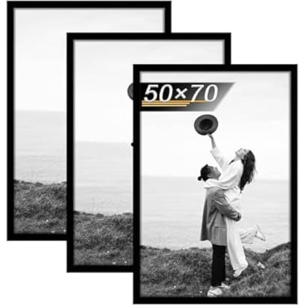 Tinkeps Picture Frame 50 x 70 cm Set of 3 Black Picture Frames 70 x 50 cm Made of Wood Material Frame 50 x 70 cm Ideal for Photos, Pictures, Posters