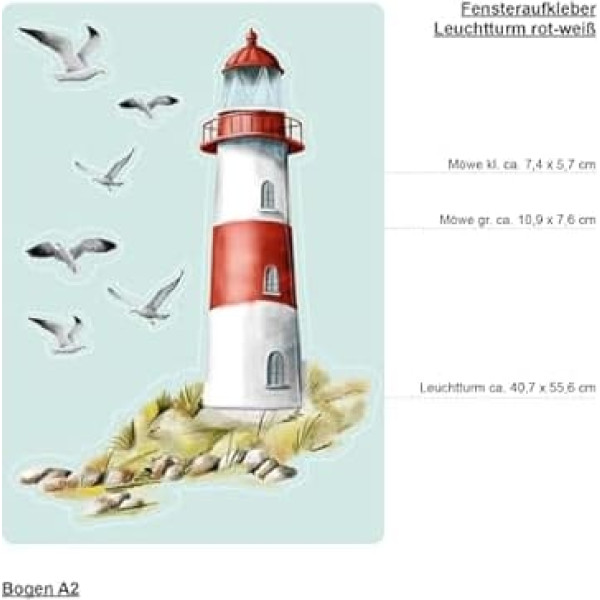 Wandtattoo Loft Window Sticker with Red Lighthouse Reusable A2 Sheet Window Sticker Beacon Maritime Red Baltic Sea North Sea Sea Holiday Window Decoration Kitchen Window Sticker Seagulls Warnemünde
