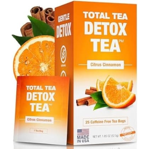 Total Tea Zero Caffeine Tea Detox Tea - All Natural - Herbal Tea for Gentle Cleansing, Supports Liver Regeneration, Body Detoxification, Detoxification Treatment - Citrus Cinnamon, 25 Tea Bags