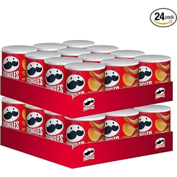 Your Pringles ritual: Salted chips are boring? Not with Pringles! The unique shape invites you to discover and play - there are countless ways to snack Pringles Pop it: Everyone recognizes the pop sound when a can of Pringles is finally opened. Share them as a party snack with friends and have fun! The tin keeps the chips crispy fresh for a long time. Clever shape: The hyperbolic paraboloid (yes, that's what it means) provides maximum fun and fits perfectly in your mouth. Have you ever made the duck mouth? Simply stack: stack your Pringles Moment with delicious varieties such as Sweet Peppers, Salt & Vinegar or Sour Cream & Onion and discover new combinations again and again. What you get: 24 x 40 g Pringles original chips salted in a resealable tin, including an extra portion of fun and stimulation for your taste buds › See more product details