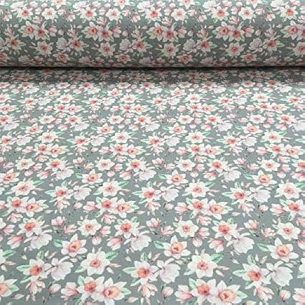 Kt KILOtela - Printed Linen Fabric Decoration Upholstery Cushion Curtains Bags Tablecloths 300cm Length x 280cm Width Shabby Chic Flowers Grey Pink ─ 3 Metres