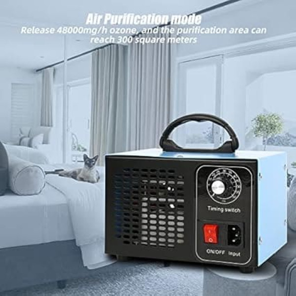 Highly efficient cleaning - 48,000 mg/h: ozone generator produces 48,000 mg ozone per hour, highly efficient disinfection and air purification with a cleaning range of 300㎡. Wide application: ozone generators are very suitable for neutralising very strong odours such as smoke, pets, cooking, musty. Widely used in toilets, smoking areas, pet areas, mouldy cellars, etc. Energy saving and environmentally friendly: ozone generator uses high voltage ionisation to produce ozone from part of the oxygen in the air. After the ozone is finished, it is reduced to oxygen. It only requires 0.1 kWh of electricity to run for an hour. ☘️【Only use in empty spaces】: We strongly recommend that you take your pet out of the room (closing windows and doors) when you use it. After completion, enter the room after another 30 to 60 minutes (high ozone concentration is harmful to the human body), open the windows and doors for ventilation. Time function: ozone air purifier can be set to 60 minutes, and the cleaning time can be adjusted to the size of the room and the intensity of the smell to be cleaned. Start and operate the ozone generator in seconds. Very simple. › See more product details; Product description List: ozone generator odour killer; Product description List: ozone generator odour killer; List: ozone generator odour killer