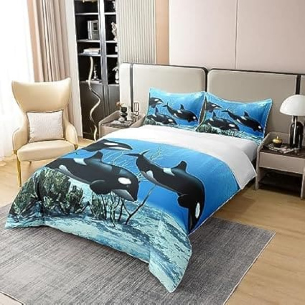 Pure Cotton Killer Whale Bed Linen Sets Orcinus Orcas Comfort Cover The Underwater World Jellyfish Duvet Cover Set for Children Girls Deep Sea Animals Sea Life Quilt Cover Children's Room Decor 135 x