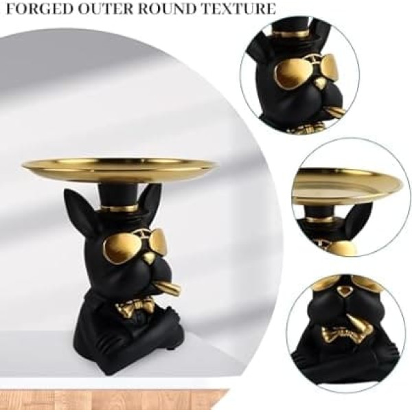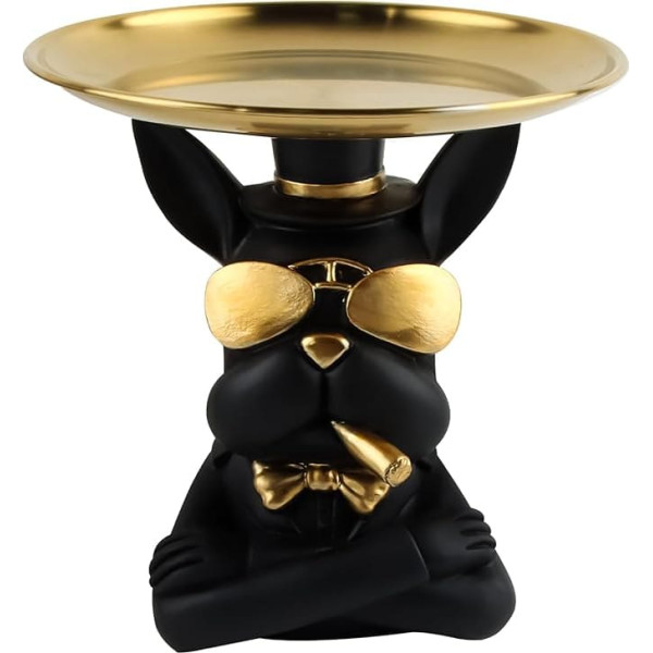 FainFun French Bulldog Tray Decoration, French Bulldog Statue Black, Bulldog Sculpture Decoration, Sculptures French Bulldog, for Living Room, Entrance, Office (Black)