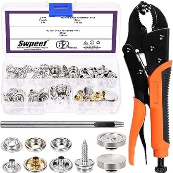 Swpeet 94 Pieces 9 Inch Heavy Duty Snap Fastener Tool, Adjustable Snap Setter Tool, Includes Canvas Snap Pliers, Stud Snaps, Cap, Socket, Hollow Hole Punch, Anvil for Boat Cover, Replace