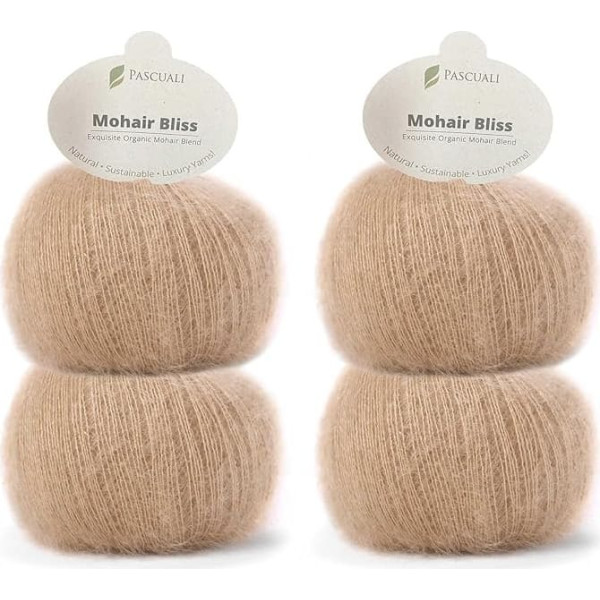 PASCUALI Mohair Bliss Knitting Wool Made of 60% Mohair Wool (Kid Mohair) 40% Silk Wool Mohair Yarn for Knitting and Crocheting, Set: 4 Balls - 100 g - Colour: Beige 825