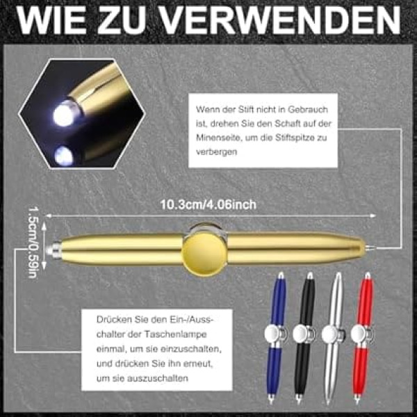 Material: the rotating pin is made of high-quality metal material, the pen body is smooth and comfortable to hold, sturdy and durable, not easy to break and can be used for a long time Stress relief: Our ADHD pen can help you relieve stress, ADHD and OCD. If you feel restless, you can take the gyroscope pen in your hand to regulate your mood and improve your concentration Smooth writing: the tip of the gyro pen is equipped with high-quality ink. The ink dries quickly and does not leak easily, giving you a smooth writing experience. It is an ideal gift for friends, family or colleagues Multifunctional: the spinning pen can not only be used for writing, it is also equipped with an LED light on the top to turn on the lighting function, which can be used as a torch, so you can write in the dark Package includes: you will receive 5 fidget pens, which is enough to meet your writing needs, and you can also enjoy the fun of spinning with friends and family › See more product details