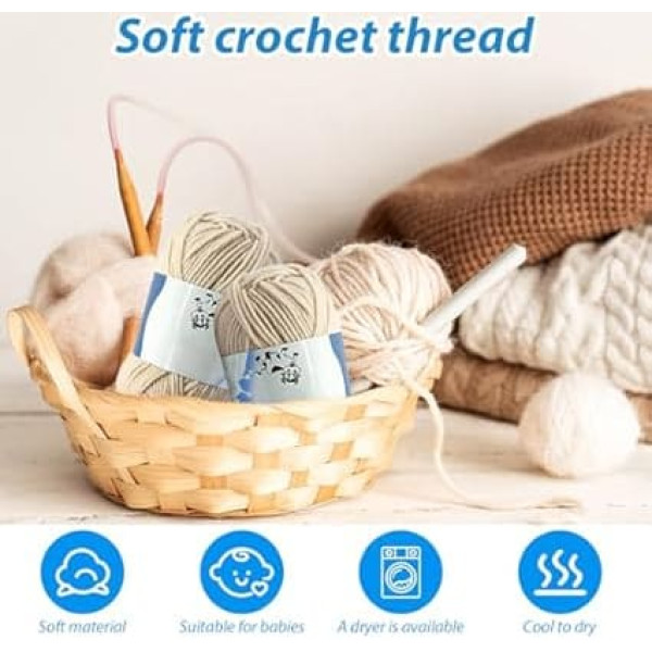 600 g Hand Knitting Yarn, 12 x 50 g Crochet Yarn, Soft Wool for Crocheting, Acrylic Yarn Knitting Wool for Double Crafts, Crochet and Crafts (Cream)