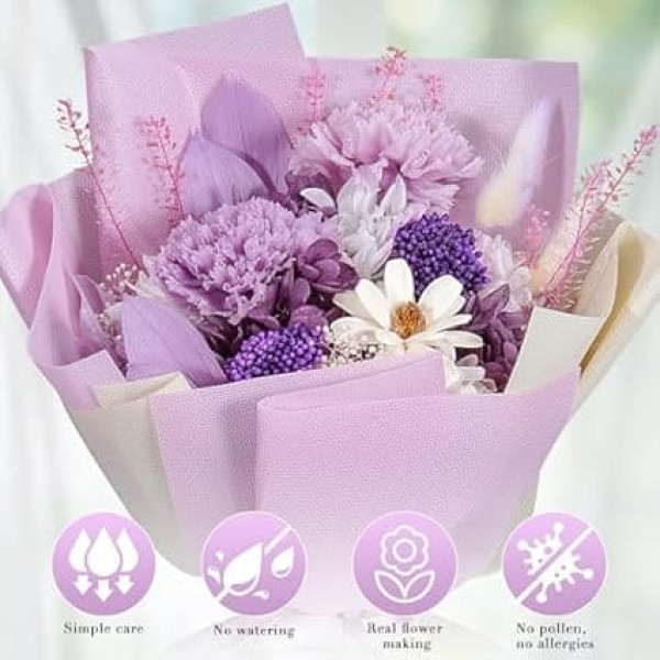 Lovionus89 Preserved Bouquet, Forever Fresh Carnations, Durable Real Flowers for Valentine's Day, Teacher's Birthday and Mother's Day, Purple
