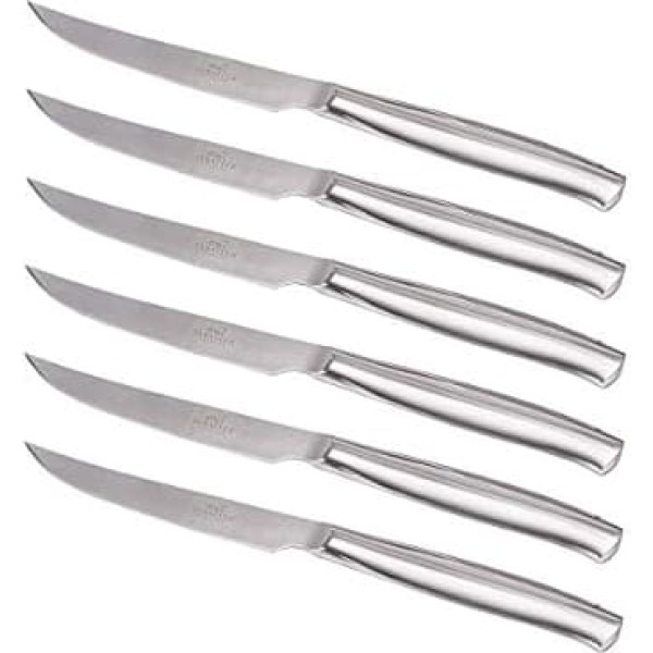 Made by one of the original Sabatier knife manufacturers in Thiers France, the capital of French cutlery Lion Sabatier, the crown jewel of Sabatier knives, is now associated with the cultural heritage of French culinary art and French cutlery. Appreciated by chefs and cooking enthusiasts around the world. 6 stainless steel steak knives with smooth blade, easy to put on the plates Beautiful photo cardboard Dishwasher safe. › See more product details; Product description Roussillon Saint German 6 piece steak knife set is made of stainless steel. As the name suggests, the knife steak is a knife around the cooked vainde to cut the plate: with a smooth blade, it is ideal to cut into the plate without tearing the meat. With a micro dentate blade, it no longer offers the same cutting pleasure, but simplifies maintenance (no re-sharpening). With a smooth blade, it is ideal for cutting into the plate without tearing the meat. Made in France.; Product description Roussillon Saint German 6 piece steak knife set is made of stainless steel. As the name suggests, the knife steak is a knife around the cooked vainde to cut the plate: with a smooth blade, it is ideal to cut into the plate without tearing the meat. With a micro dentate blade, it no longer offers the same cutting pleasure, but simplifies maintenance (no re-sharpening). With a smooth blade, it is ideal for cutting into the plate without tearing the meat. Made in France.; Roussillon Saint German 6 piece steak knife set is made of stainless steel. As the name suggests, the knife steak is a knife around the cooked vainde to cut the plate: with a smooth blade, it is ideal to cut into the plate without tearing the meat. With a micro dentate blade, it no longer offers the same cutting pleasure, but simplifies maintenance (no re-sharpening). With a smooth blade, it is ideal for cutting into the plate without tearing the meat. Made in France.