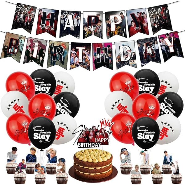 32 Pieces SKZ Birthday Party Decoration, Stray-K Decoration Set Birthday Party Decorations Happy Birthday Banner Cake Insert Children's Theme Party Balloons Stray-K Fans Save time and effort: Stray-K perfect party for your children with just one set of Stray-K decoration. Perfect for bear themed parties, birthday parties and various other children's play parties. Impress your children and their friends with our wide range of Stray-K party supplies Specially designed for fans: impress your children and their friends with our most popular accessories for themed parties. If you want to give your child an unforgettable birthday party, do not hesitate, it is definitely a surprise for your child and his friends › See more product details; Product description Features: - High quality: high-quality materials, safe materials that you can use safely. - Multiple use: very suitable for Stray K theme party decoration and music parties. - Create atmosphere: create party atmosphere, photo booth prop, cool and meaningful. - Time saving: saves you a lot of time to decorate the party. So you can enjoy the party carnival to the fullest. Specification: Product Name: Stray-K Theme Party Set Material: rubber and cardboard. Colour: as shown in the picture. Product quantity: 32 pieces. Package includes: 1 x Stray-K pull the flag. 12 x Stray-K small flags. 1 x Stray-K large flag. 18 x Stray-K balloons.; Product description Features: - High quality: high-quality materials, safe materials that you can use safely. - Multiple use: very suitable for Stray K theme party decoration and music parties. - Create atmosphere: create party atmosphere, photo booth prop, cool and meaningful. - Time saving: saves you a lot of time to decorate the party. So you can enjoy the party carnival to the fullest. Specification: Product Name: Stray-K Theme Party Set Material: rubber and cardboard. Colour: as shown in the picture. Product quantity: 32 pieces. Package includes: 1 x Stray-K pull the flag. 12 x Stray-K small flags. 1 x Stray-K large flag. 18 x Stray-K balloons.; Features: - High quality: high-quality materials, safe materials that you can use safely. - Multiple use: very suitable for Stray K theme party decoration and music parties. - Create atmosphere: create party atmosphere, photo booth prop, cool and meaningful. - Time saving: saves you a lot of time to decorate the party. So you can enjoy the party carnival to the fullest. Specification: Product Name: Stray-K Theme Party Set Material: rubber and cardboard. Colour: as shown in the picture. Product quantity: 32 pieces. Package includes: 1 x Stray-K pull the flag. 12 x Stray-K small flags. 1 x Stray-K large flag. 18 x Stray-K balloons.