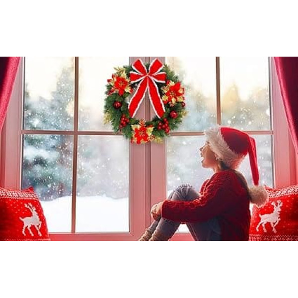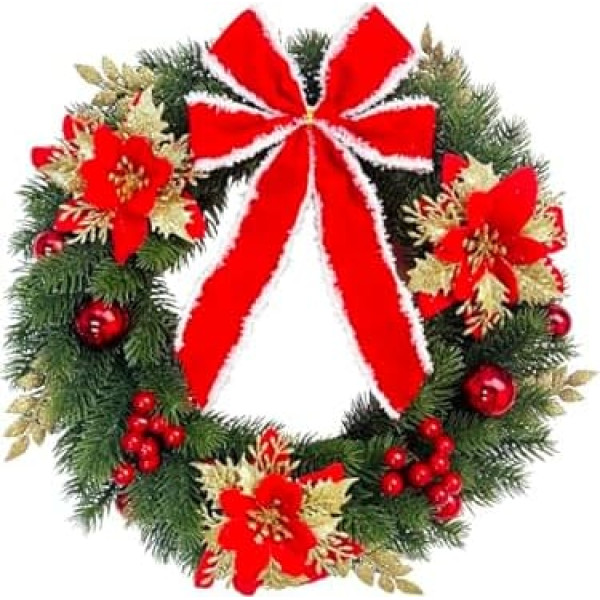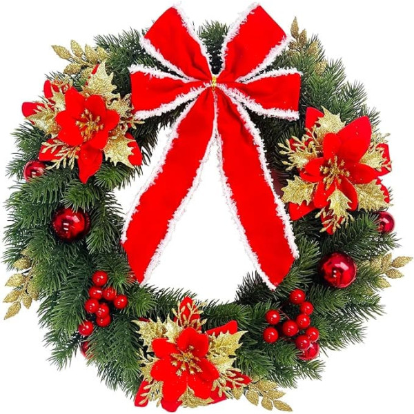 18 inch winter Christmas wreath with red poinsettia, gold leaves and berries for front door or window › See more product details; Product description 18 inch winter Christmas wreath with red poinsettia, gold leaves and berries for front door or window; Product description 18 inch winter Christmas wreath with red poinsettia, gold leaves and berries for front door or window; 18 inch winter Christmas wreath with red poinsettia, gold leaves and berries for front door or window