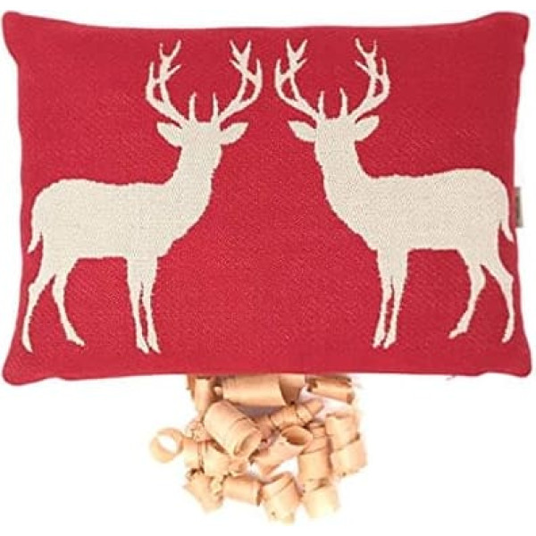 Gaidra Swiss pine cushion with pine wood shavings, jacquard fabric made of 100% cotton, South Tyrolean quality craftsmanship, Tyrolean Alpine country house style, deer, red, beige, double face, 20 x