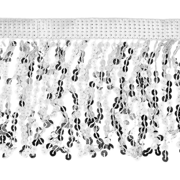 FINGERINSPIRE 9.14 m Sequin Fringe Trim 24 cm Wide Silver Sequin Tassel Fringe Trim Sequins Tassels Sewing Trim for Latin American Dresses Clothing Decoration Costumes Curtain Decoration