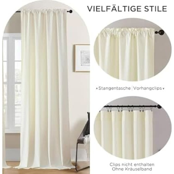Joydeco Living Room Velvet Curtains, Set of 2, H 245 x W 132 cm, Ivory White, Elegant Velvet Curtain, Blackout Curtains, Thermal Curtain, Cold Protection, Opaque, Bedroom