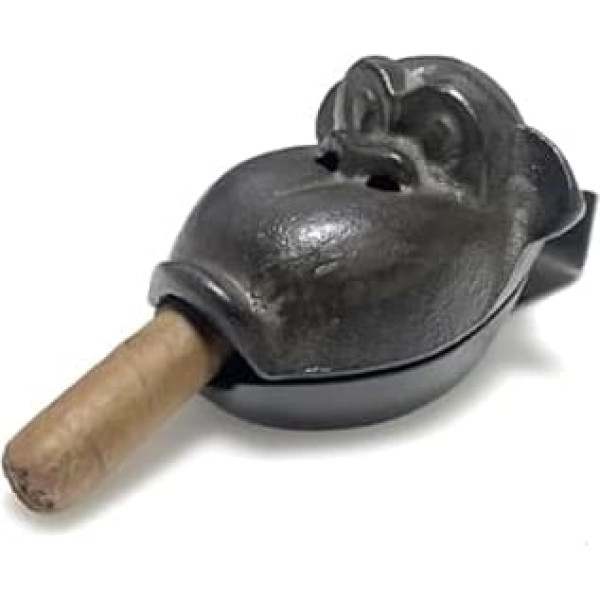 FUN CAST IRON CIGAR ASHTRAY - Heavy duty metal ashtray with unique gorilla design. Perfect for cigars and cigarettes, an eye-catcher for smokers with style. CONVENIENT FLIP LID FOR LESS ASH DISTRIBUTION - The lid reduces ash flying around and keeps the environment clean - ideal for indoor and outdoor use. DECORATIVE AND FUNCTIONAL Stylish combination of art and utility - an exceptional ashtray for the desk, living room or patio. PERFECT GIFT FOR CIGAR LOVERS A special and quirky smoker gift for men, friends or collectors, great for birthdays or Christmas. EASY TO CLEAN & EXTREMELY DURABLE: High quality cast iron ensures stability and long Easy to empty and clean with a cloth. › See more product details