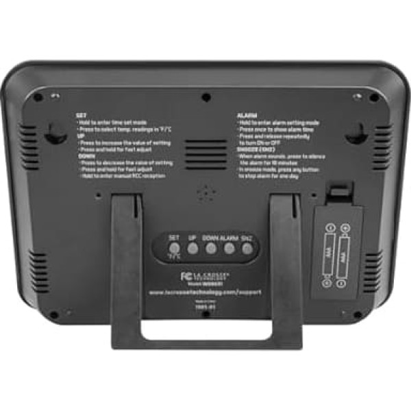 Precise Atomic Time: The exact atomic time is automatically set and set to daylight saving time (off option) Easy battery operation: simply set to your time zone selection (7 different choices: AST, EST, CST, MST, PST, AKT, HAT) Calendar/temperature: month/day/day of the week and current ambient temperature (°F/°C adjustable) Time alarm: crescendo alarm sound with snooze duration of an additional 10 minutes Table stand or wall hanger › See more product details; Product description Be ready for the day with the La Crosse Technology Digital Atomic Clock with Temperature. This watch has handy features to provide information you need to know. The self-adjusting clock gives you accurate time and date wirelessly, so you are sure to be on time. It has a WWVB radio signal antenna for the best accuracy of time and automatically resets for daylight saving time. It also works as an alarm clock and provides a crescendo alarm (gradually increasing) with an additional 10 minute snooze function. The clock is battery operated, so it maintains the right time after power outages or surges. It also indicates when it's time to change batteries (requires 2 AAA, sold separately). This timepiece gives you the opportunity to be prepared for almost anything. It offers seven different factory set time zones (Atlantic to Hawaiian), so you need to select your time zone, place the clock in the direction of the WWVB signal direction (NIST Tower in Fort Collins, CO) and the time will automatically set your time and date accurately. Monitors indoor room temperature and can be displayed in either Fahrenheit or Celsius. All you need to do is take a look and you're ready for the day.; Product description Be ready for the day with the La Crosse Technology Digital Atomic Clock with Temperature. This watch has handy features to provide information you need to know. The self-adjusting clock gives you accurate time and date wirelessly, so you are sure to be on time. It has a WWVB radio signal antenna for the best accuracy of time and automatically resets for daylight saving time. It also works as an alarm clock and provides a crescendo alarm (gradually increasing) with an additional 10 minute snooze function. The clock is battery operated, so it maintains the right time after power outages or surges. It also indicates when it's time to change batteries (requires 2 AAA, sold separately). This timepiece gives you the opportunity to be prepared for almost anything. It offers seven different factory set time zones (Atlantic to Hawaiian), so you need to select your time zone, place the clock in the direction of the WWVB signal direction (NIST Tower in Fort Collins, CO) and the time will automatically set your time and date accurately. Monitors indoor room temperature and can be displayed in either Fahrenheit or Celsius. All you need to do is take a look and you're ready for the day.; Be ready for the day with the La Crosse Technology Digital Atomic Clock with Temperature. This watch has handy features to provide information you need to know. The self-adjusting clock gives you accurate time and date wirelessly, so you are sure to be on time. It has a WWVB radio signal antenna for the best accuracy of time and automatically resets for daylight saving time. It also works as an alarm clock and provides a crescendo alarm (gradually increasing) with an additional 10 minute snooze function. The clock is battery operated, so it maintains the right time after power outages or surges. It also indicates when it's time to change batteries (requires 2 AAA, sold separately). This timepiece gives you the opportunity to be prepared for almost anything. It offers seven different factory set time zones (Atlantic to Hawaiian), so you need to select your time zone, place the clock in the direction of the WWVB signal direction (NIST Tower in Fort Collins, CO) and the time will automatically set your time and date accurately. Monitors indoor room temperature and can be displayed in either Fahrenheit or Celsius. All you need to do is take a look and you're ready for the day.