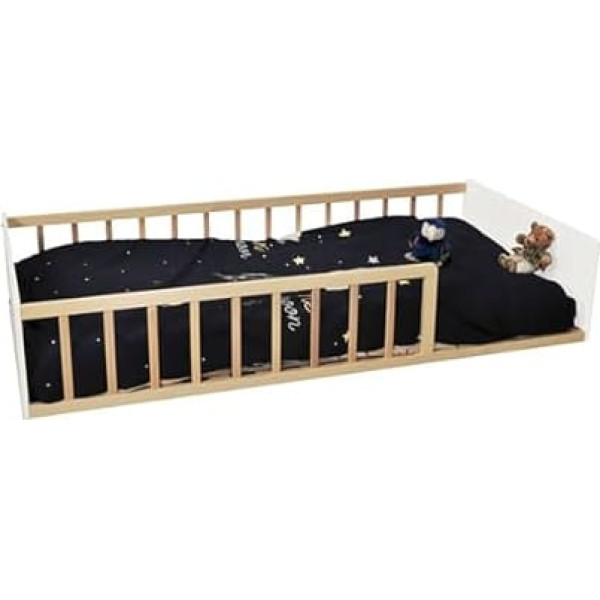 Optimum safety thanks to barriers Soft colours (white/natural) Slatted frame with 12 slats Maximum load: 80 kg Recommended mattress height: 15 cm Delivered unassembled and without mattress, for self-assembly. Overall dimensions: 193.5 x 95 x 37.5 cm › See more product details; Product description Product Description Our Pilou bed 90 x 190 cm is inspired by Montessori, modern and safe, it will be the ideal nap partner for your children. Safety Warning Not suitable for children under 4 years; Product description Product Description Our Pilou bed 90 x 190 cm is inspired by Montessori, modern and safe, it will be the ideal nap partner for your children. Safety Warning Not suitable for children under 4 years; Product Description Our Pilou bed 90 x 190 cm is inspired by Montessori, modern and safe, it will be the ideal nap partner for your children. Safety Warning Not suitable for children under 4 years