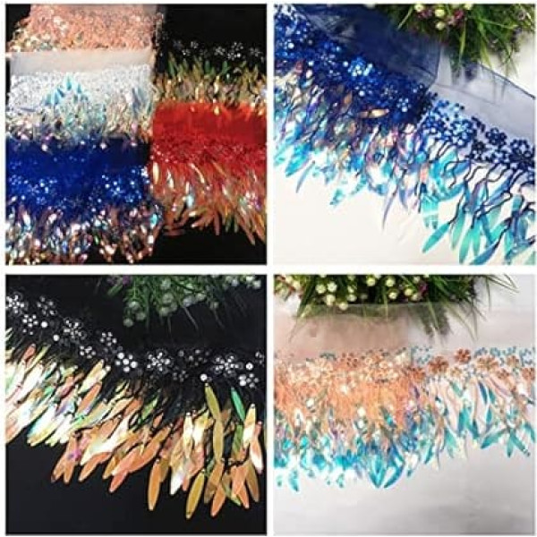 1 Yard Pailletten Spitze Fringe Quastel Bestickte Band Stoff Für Tanzpartyzubehör Nähen Kleidungsstücke Accessoires