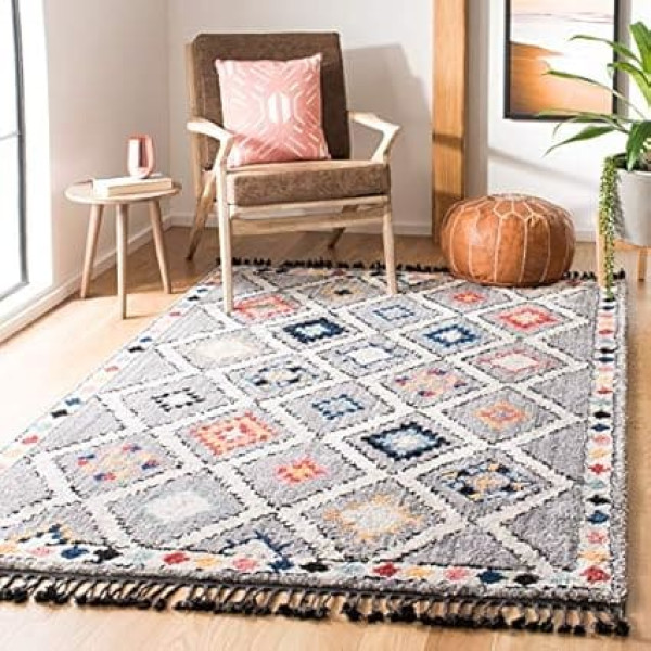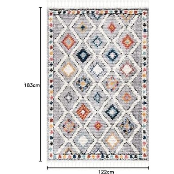 SAFAVIEH Boho Rug for Living Room, Dining Room, Bedroom - Morocco Collection, Short Pile, Grey and Multi, 122 x 183 cm