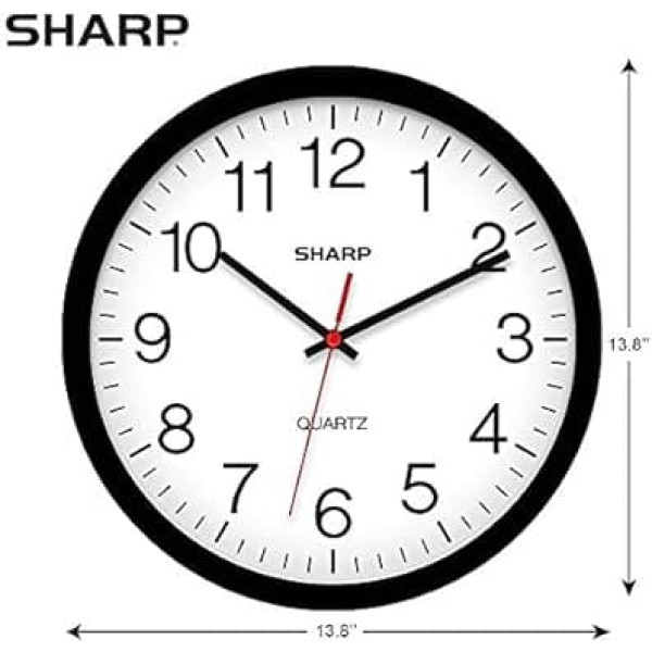 14 inch watch. Large black numbers on white dial ensure easy viewing in this modern design watch. Easy to read from around the room, office, classroom, workshop QUIET SWEEP MOVEMENT WITHOUT TICKING:High quality silent quartz movement, keep accurate time. As it does not tick, there is no loud ticking, no noise and is perfect for bedroom, living room, computer room, cafe, office, conference room. Sturdy plastic frame and glass lens make cleaning easier and keep dust away from the dial Easy to hang. The perfect wall clock for office, classroom, bedroom, bathroom and any room in your home Battery operated - requires 1 AA battery (not included) › See more product details; Product description SHARP Wall Clock Black Silent Non Ticking 14 Inch High Quality Quartz Battery Operated Round Easy to Read for Home/Kitchen/Office/Classroom/School Clock Movement Sweep Movement Large black numbers on white dial ensure easy viewing in this modern design clock. Easy to read from around the room, office, classroom, workshop. QUIET SWEEP MOVEMENT WITHOUT TICKING:High quality silent quartz movement, keep accurate time. As it does not tick, there is no loud ticking, no noise and is perfect for bedroom, living room, computer room, cafe, office, conference room. Sturdy plastic frame and lens make it easy to clean and keep dust away from the dial. Easy to hang. The perfect wall clock for office, classroom, bedroom, bathroom and any room in your home. Battery operated - requires 1 AA battery (not included); Product description SHARP Wall Clock Black Silent Non Ticking 14 Inch High Quality Quartz Battery Operated Round Easy to Read for Home/Kitchen/Office/Classroom/School Clock Movement Sweep Movement Large black numbers on white dial ensure easy viewing in this modern design clock. Easy to read from around the room, office, classroom, workshop. QUIET SWEEP MOVEMENT WITHOUT TICKING:High quality silent quartz movement, keep accurate time. As it does not tick, there is no loud ticking, no noise and is perfect for bedroom, living room, computer room, cafe, office, conference room. Sturdy plastic frame and lens make it easy to clean and keep dust away from the dial. Easy to hang. The perfect wall clock for office, classroom, bedroom, bathroom and any room in your home. Battery operated - requires 1 AA battery (not included); SHARP Wall Clock Black Silent Non Ticking 14 Inch High Quality Quartz Battery Operated Round Easy to Read for Home/Kitchen/Office/Classroom/School Clock Movement Sweep Movement Large black numbers on white dial ensure easy viewing in this modern design clock. Easy to read from around the room, office, classroom, workshop. QUIET SWEEP MOVEMENT WITHOUT TICKING:High quality silent quartz movement, keep accurate time. As it does not tick, there is no loud ticking, no noise and is perfect for bedroom, living room, computer room, cafe, office, conference room. Sturdy plastic frame and lens make it easy to clean and keep dust away from the dial. Easy to hang. The perfect wall clock for office, classroom, bedroom, bathroom and any room in your home. Battery operated - requires 1 AA battery (not included)