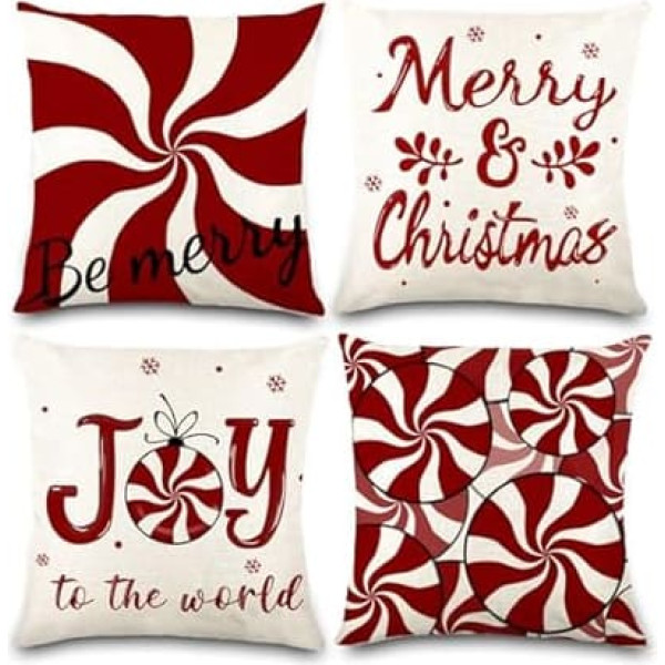 JOISHOP Christmas Pillow Covers 18x18 Inch Set of 4 Red Candy Christmas Pillow Covers Christmas Winter Square Cushion Cover for Living Room Sofa Home Bedroom Decor